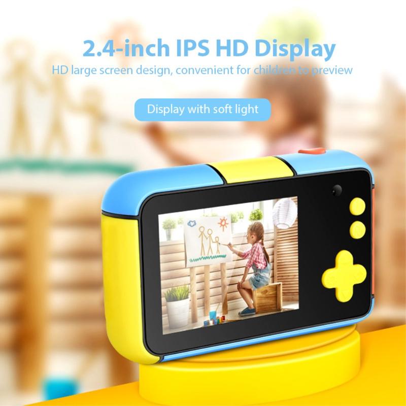 Diese Kinderkamera ist eine coole Kinderkamera mit einem mehrfarbigen Design und einem 2,4 Zoll großen Bildschirm. Sie ist geeignet, das Interesse der Kinder am Fotografieren zu fördern, ihr Gehirn zu entwickeln und sie für Aktivitäten im Freien zu begeistern.