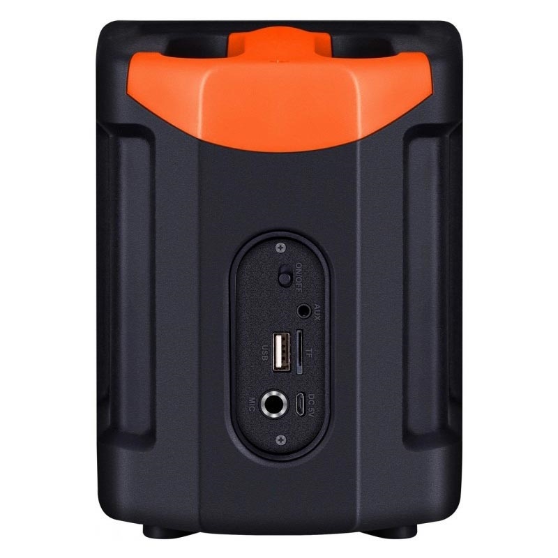 Die Investition in diesen tragbaren Bluetooth-Lautsprecher bedeutet Komfort auf ganzer Linie: vielseitige Wiedergabeoptionen, auffällige LED-Beleuchtung und ein solider 1800-mAh-Akku für lange Spielzeiten. Die kompakte Bauweise und das ergonomische Design erleichtern den Transport, und die Bassreflexöffnung an der Vorderseite sorgt für robusten Klang in engen Räumen oder im Freien.