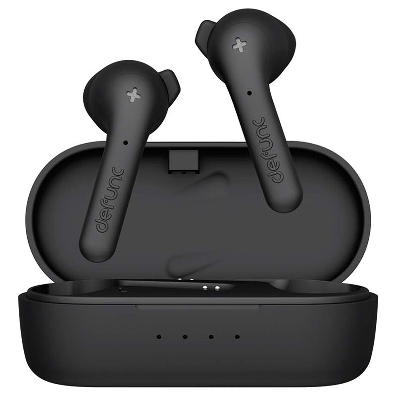 - In Verbindung mit einem Ladeetui bieten diese Defunc True Basic-Ohrhörer eine Gesamtspielzeit von bis zu 12 Stunden