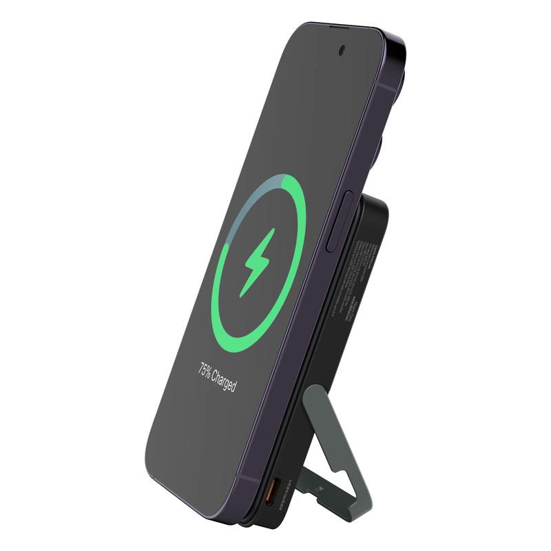 Mit bis zu 15 W kabellosem Laden für kompatible Geräte und bis zu 7,5 W für iPhones macht es das kabellose Laden einfach. Der integrierte Magnet ist mit der magnetischen Lösung von Apple und ähnlichen Systemen kompatibel und sorgt dafür, dass die Powerbank während des Gebrauchs in der richtigen Position bleibt. Der integrierte Ständer sorgt für zusätzliche Flexibilität und erleichtert das Ansehen von Videos, das Surfen im Internet oder die Teilnahme an Anrufen, während Ihr Smartphone lädt.