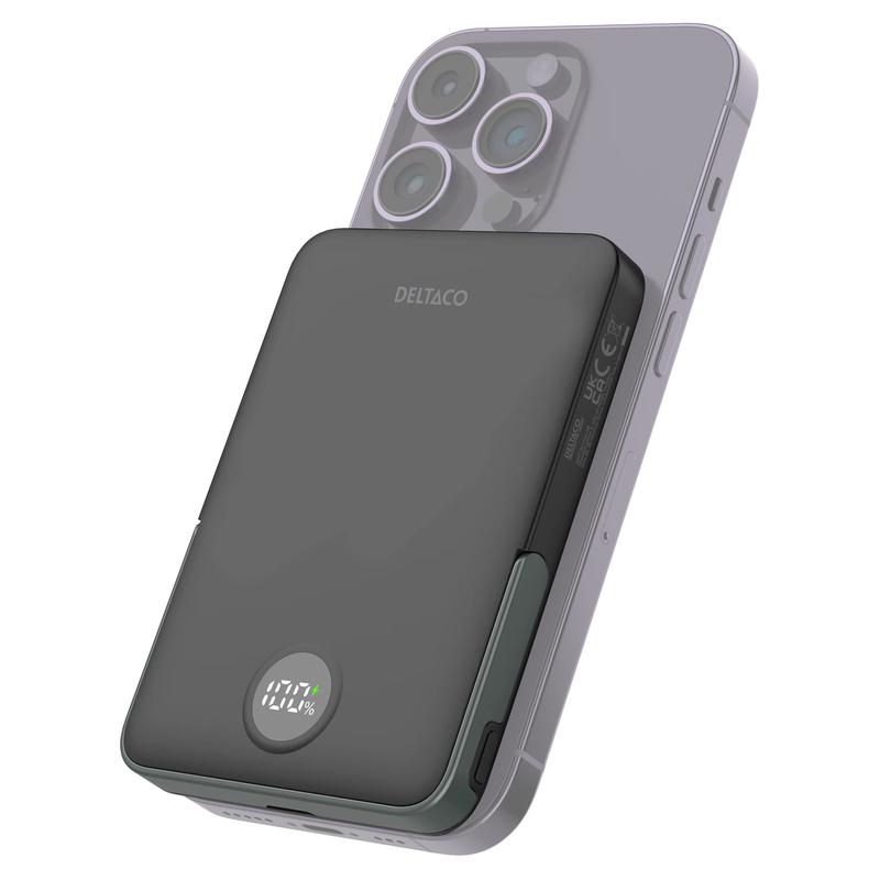Mit der magnetischen kabellosen Powerbank Deltaco 5000mAh haben Sie immer zusätzliche Energie griffbereit. Dieses kompakte, tragbare Ladegerät wurde für den täglichen Komfort entwickelt und vereint kabelloses Laden, USB-C-PD-Schnellladen und einen integrierten Ständer in einem praktischen Gerät. Es ist die ideale Wahl für den Weg zur Arbeit, auf Reisen, im Büroalltag und als tägliche Ladesicherung, wenn Sie eine einfache und übersichtliche Stromversorgungslösung benötigen.
