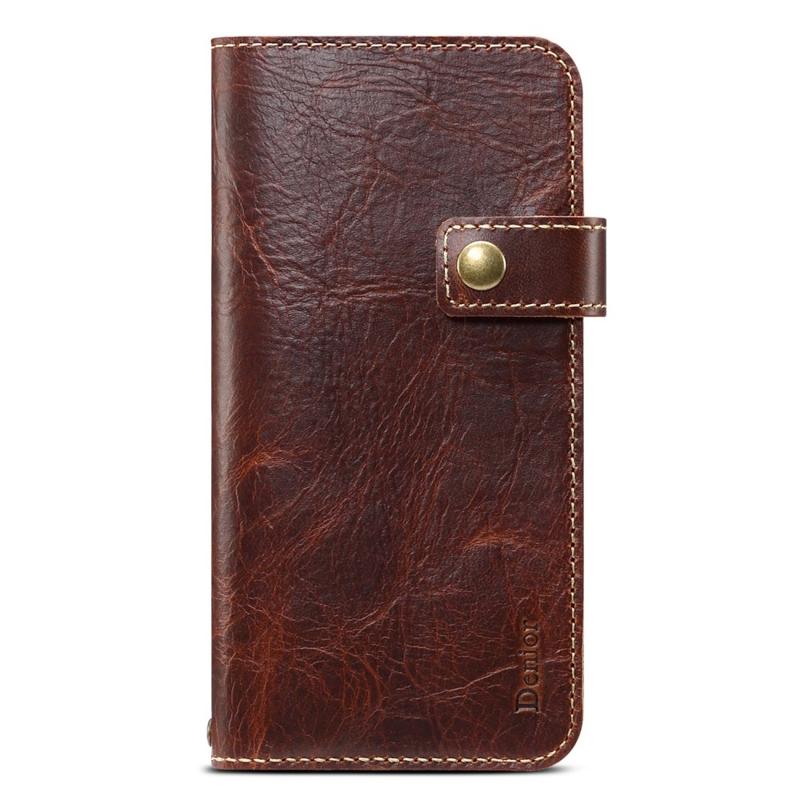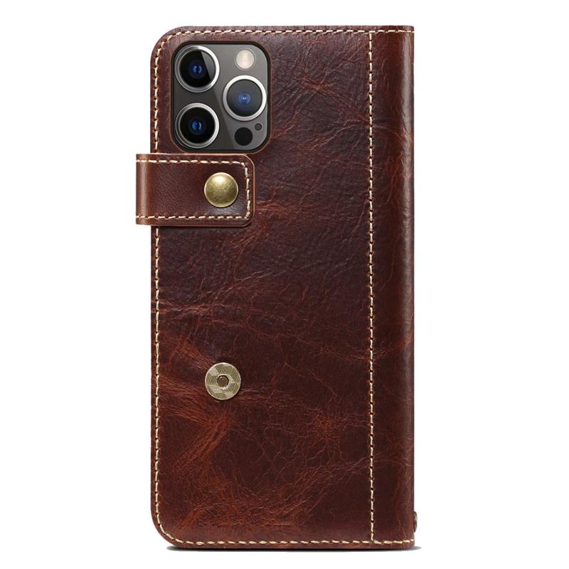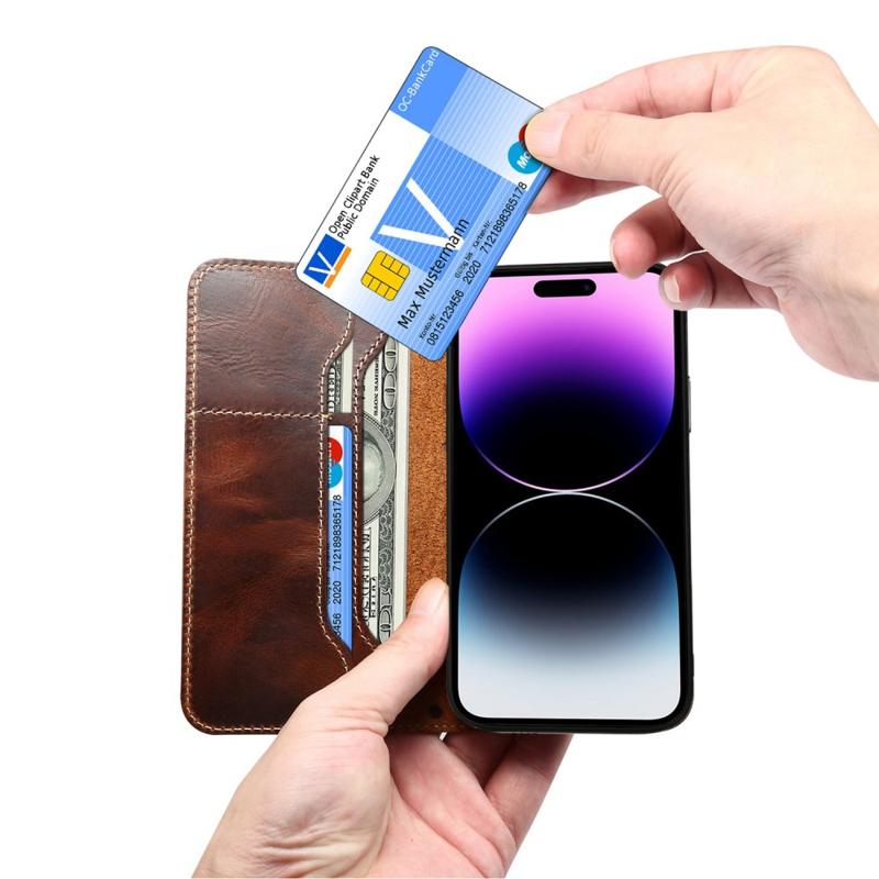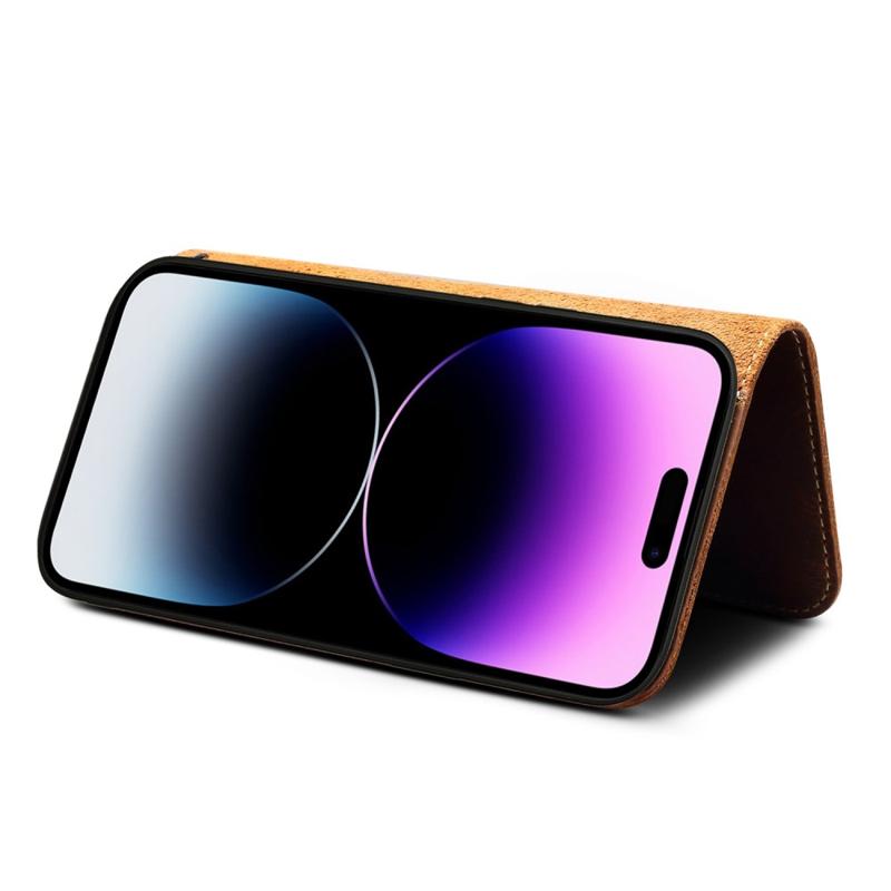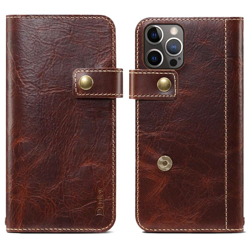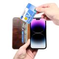 Denior Vintage Serie iPhone 14 Pro Lederhülle mit Geldbörse - Braun