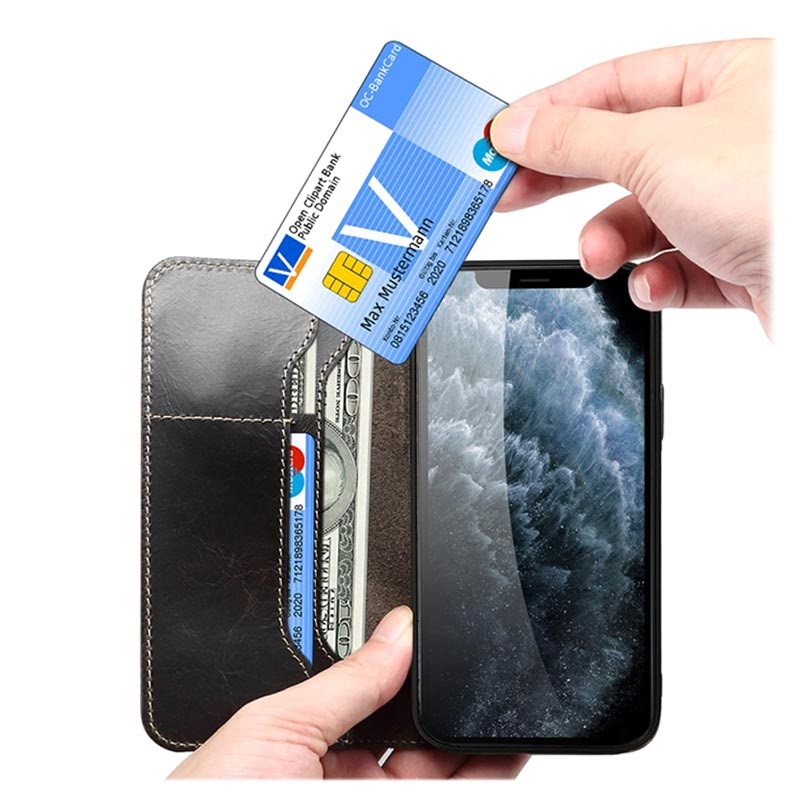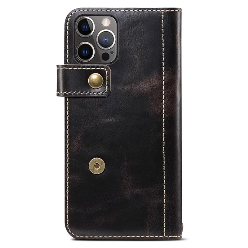 Denior Vintage Serie iPhone 13 Pro Max Lederhülle mit Geldbörse - Schwarz