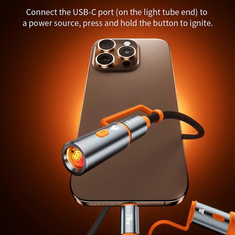 - Multifunktionales Design: Ladekabel plus LED-Lampe plus elektronisches Feuerzeugmodul