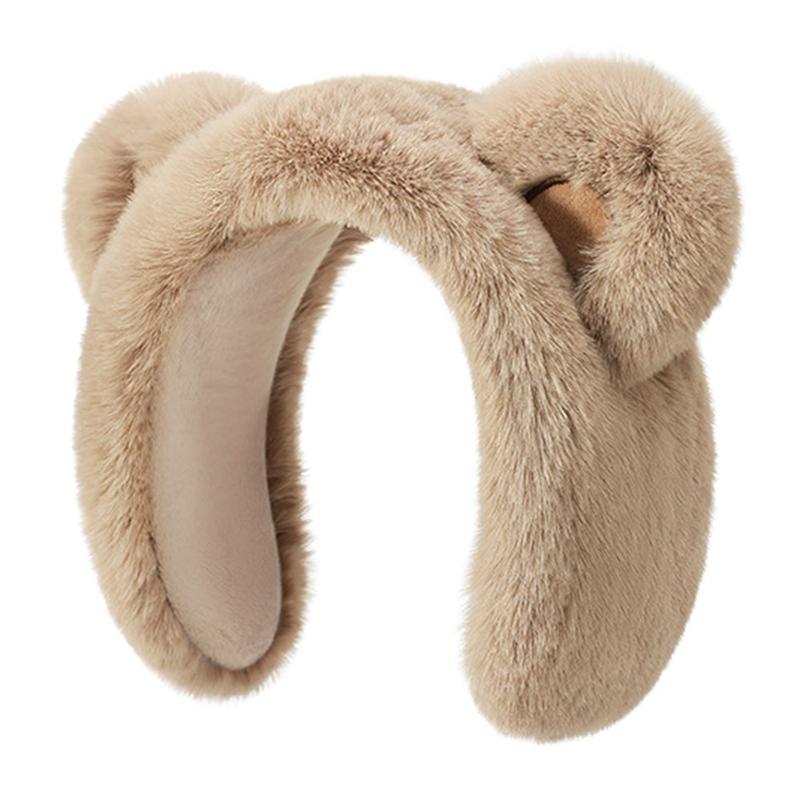 DEZ45 Niedliches Plüsch-Bärenohr Winter-Stirnband / Ohrenschützer - Khaki
