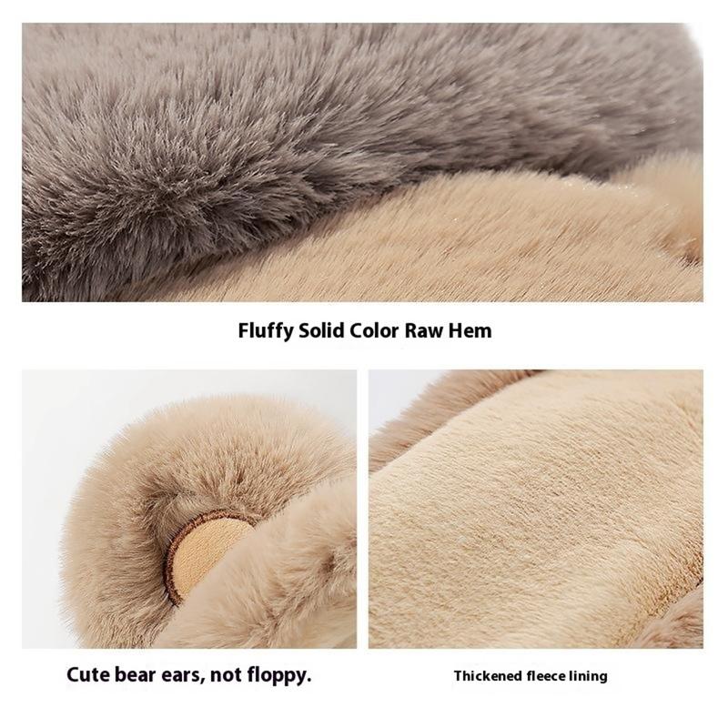 DEZ45 Niedliches Plüschbärenohr Winterstirnband - Warmes winddichtes Haarband für Frauen