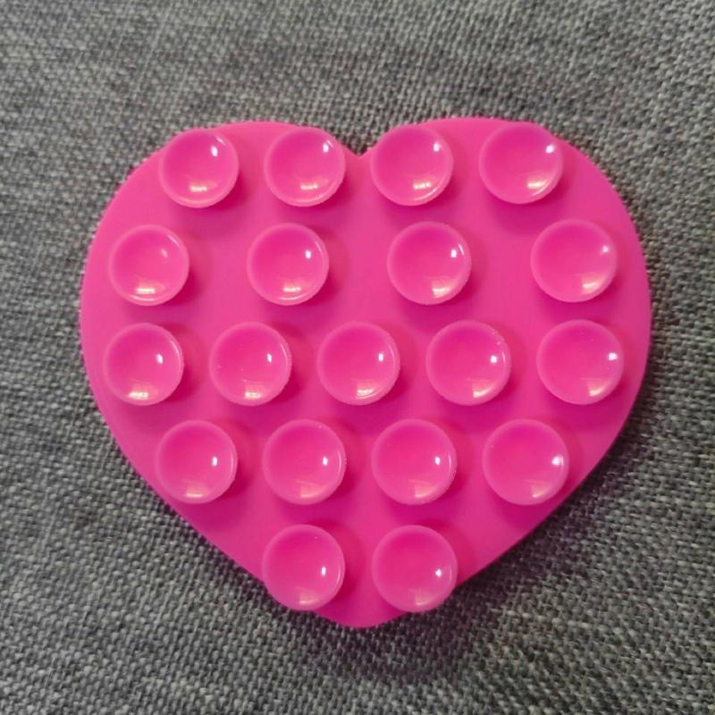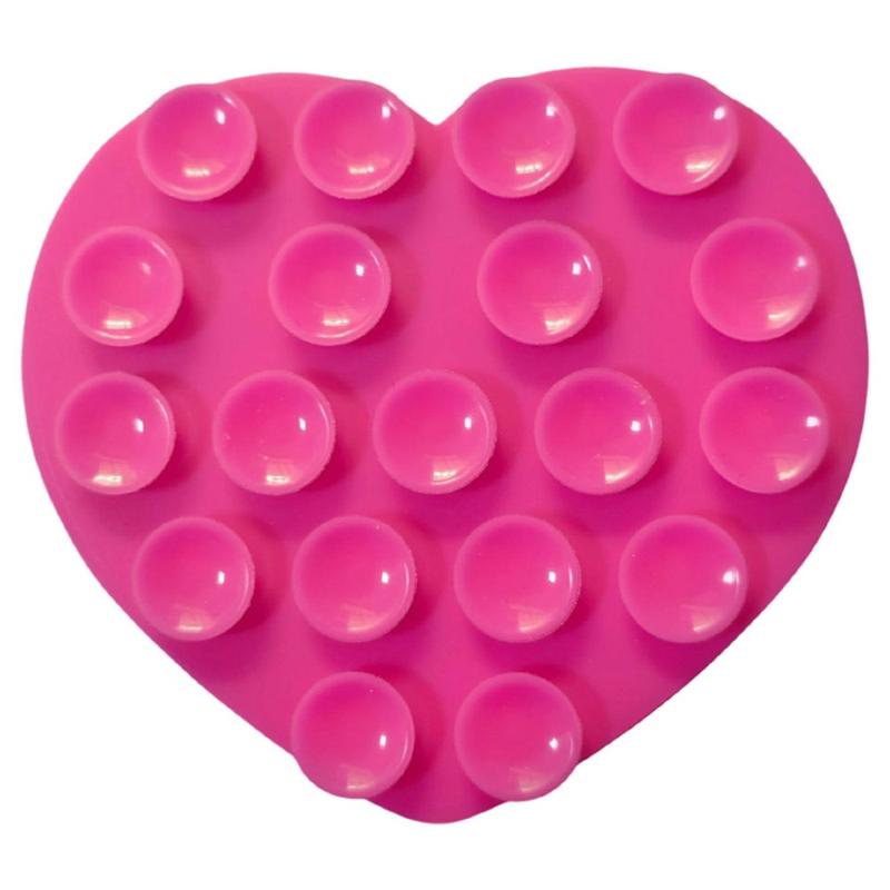 Doppelseitiger Silikon-Saugnapf-Halter in Herzform für Smartphones - Hot Pink