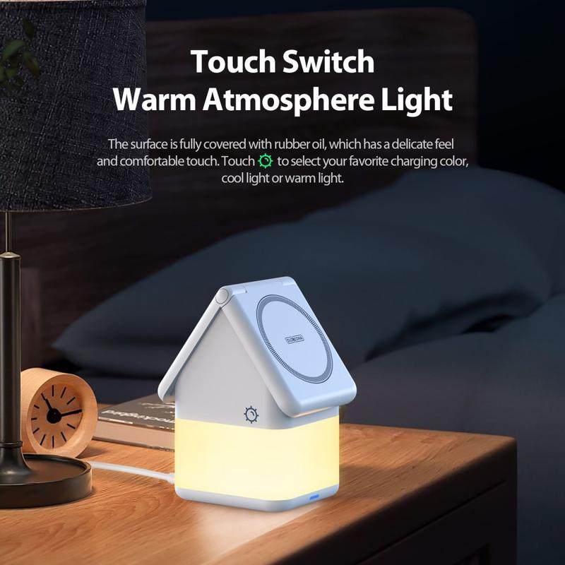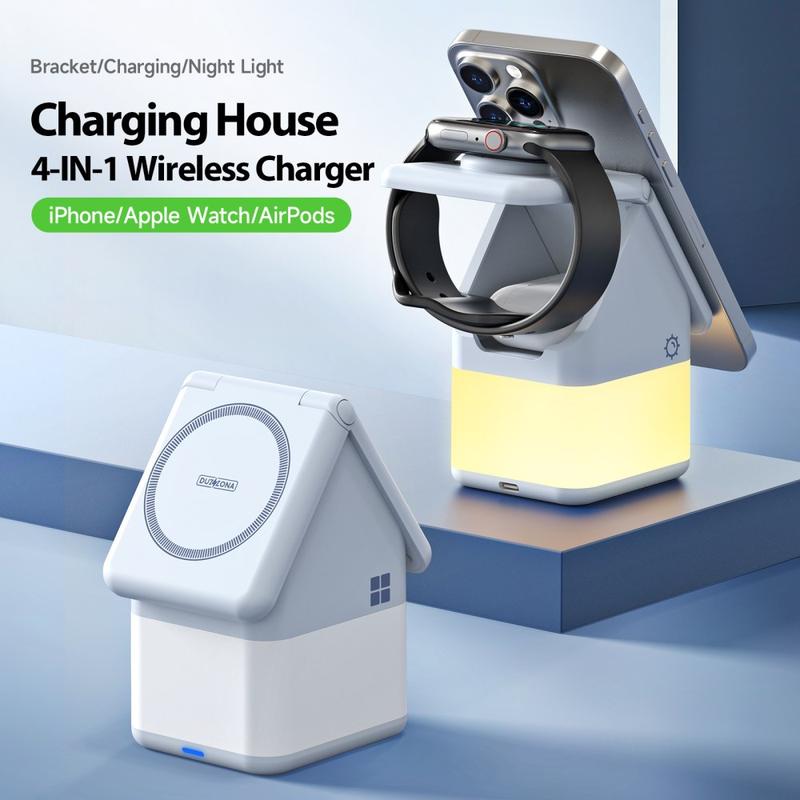 • Duzzona W20 4-in-1 Wireless-Ladestation mit Nachtlicht für iPhone, AirPods, Apple Watch - 15W