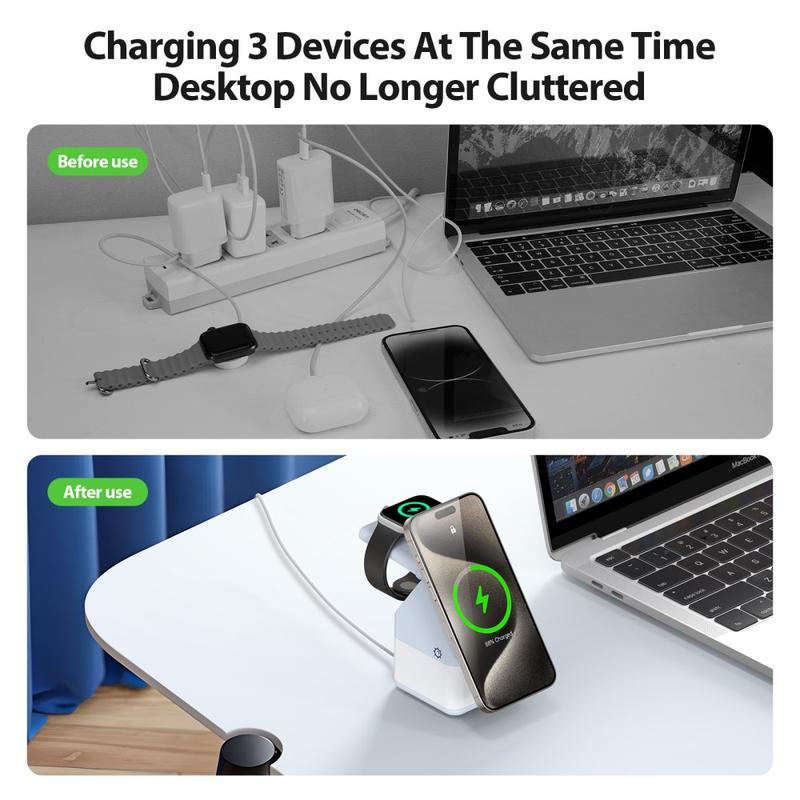 Entwickelt für die iPhone 16-Serie bis hinunter zur 12-Serie, ermöglicht magnetisches Laden. Auch kompatibel mit Apple Watch Series 1 bis 9, einschließlich SE und Ultra Modelle, und für AirPods 2, 3, Pro und Pro 2