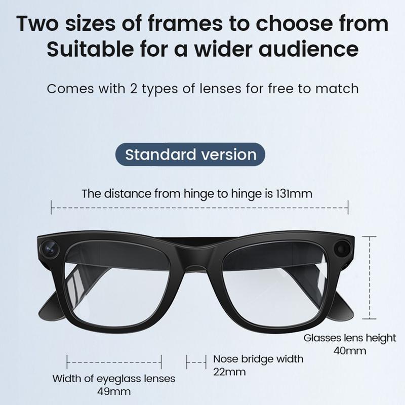 E02 Intelligente AI-Brille - Dual-Lens Kamera Brille mit AI Übersetzung, Anti-Shake und 1080P Video