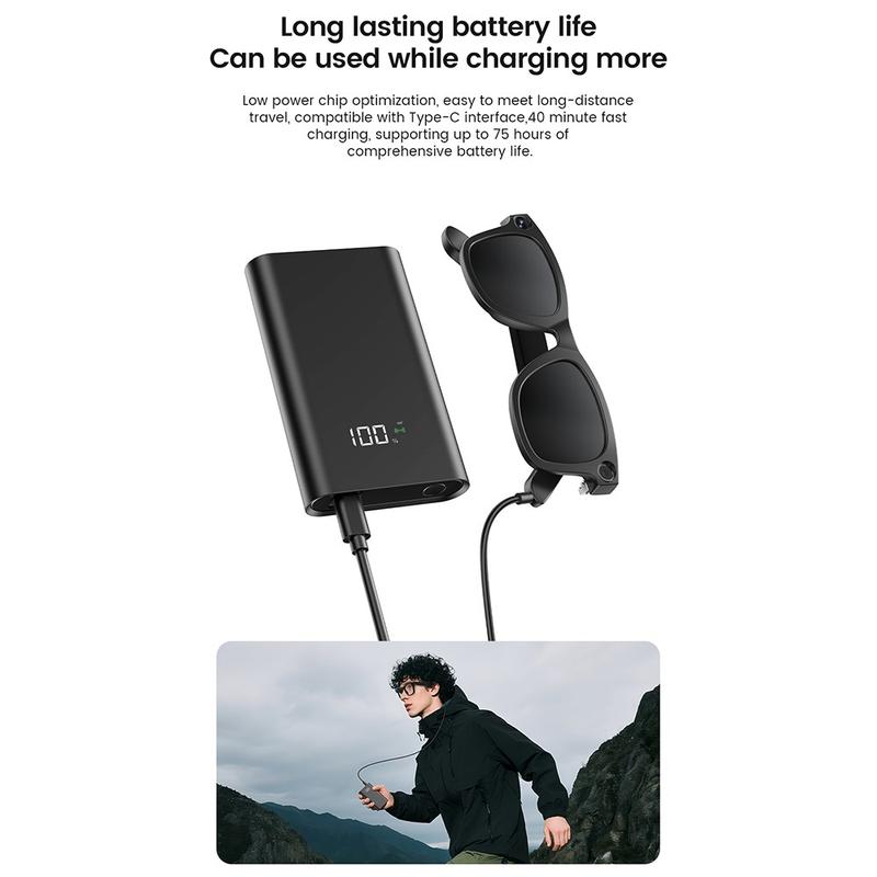 - Lange Akkulaufzeit - 320-mAh-Akku mit Typ-C-Schnellladung; bis zu 75 Stunden Standby, 10 Stunden Musik, 3 Stunden Daueraufnahme.