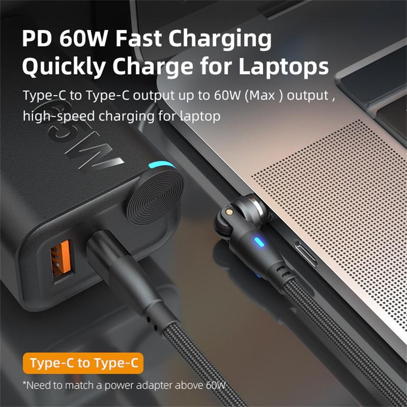 • E9 USB-C-zu-USB-C-Magnetkabel 1 m - 60 W PD-Schnellladung und USB 2.0-Datenübertragung, 540-Grad-Drehbarkeit, Nylongeflecht