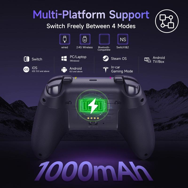- Dreifach-Konnektivität - Einfaches Umschalten zwischen 2,4-GHz-Wireless-, Bluetooth-kompatiblem und kabelgebundenem USB-C-Modus für nahtlose Kompatibilität mit Switch, Windows, Android und iOS.
