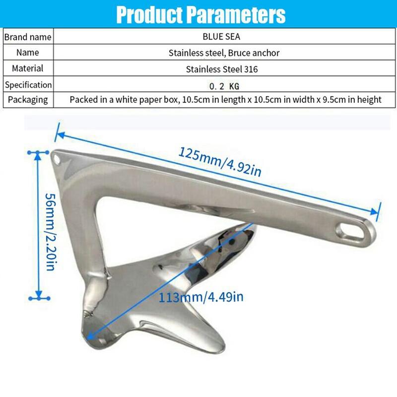• 316 Edelstahl Bruce Anker 0,2 kg mit 5m Seil - Kompakter Anker für Kajak, Schlauchboot & kleine Wasserfahrzeuge (inklusive Karabinerhaken)