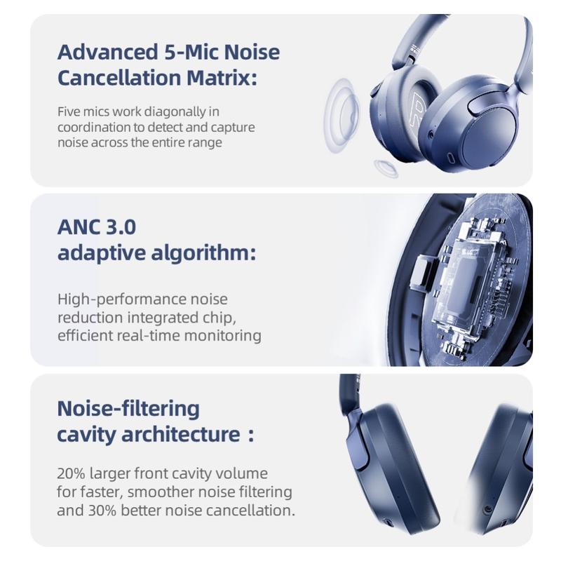 - Lange Akkulaufzeit - 1000mAh-Akku bietet bis zu 120 Stunden Wiedergabe (ANC aus) oder 60 Stunden (ANC an).