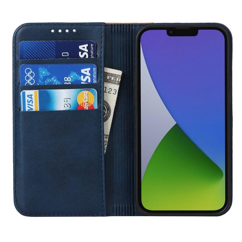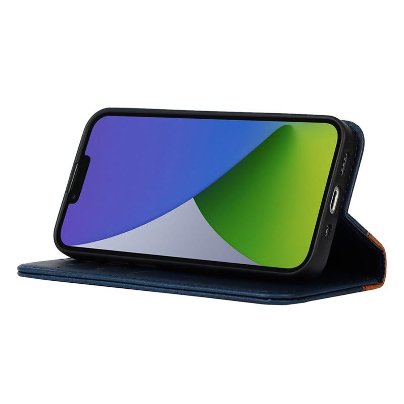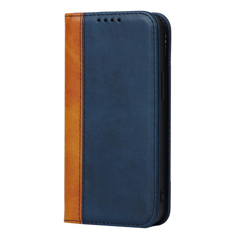 • For iPhone 14 Bi-color Splicing Magnetic Auto-absorbed Calf Texture PU Leather Phone Case Drop-proof Wallet Stand Cover - Characterized by calf textured surface PU leather with TPU material, fine quality and chic outlook - Soft TPU inner can be freely twisted and not easy to deform - Bi-color splicing design, stylish and eye-catching - Designed with card slots and cash compartment for cash and cards storage  - Can be converted into a supporting stand with adjustable angle - Higher lip and edges can protect the rear camera from scratches - Super magnet closure for closing the case tightly - Hassle-free on-off installation/removal