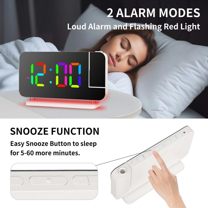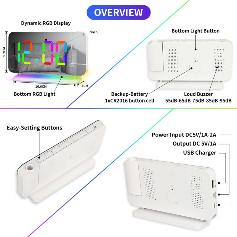 - Nachttischuhr: Nutzen Sie die RGB-Beleuchtung und die Projektionsfunktion, um nachts mühelos die Zeit zu überprüfen.