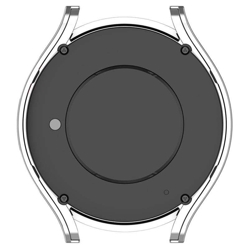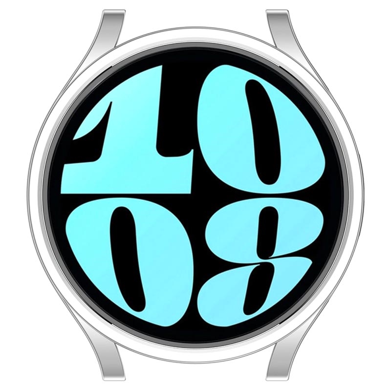 Das 2-in-1-Design besteht aus einem hochwertigen Polycarbonat-Gehäuse und einem integrierten 9H-Bildschirmschutz, der Schutz vor Staub, Schmutz, Beschädigungen und Kratzern bietet. Es ist schlank und leicht, so dass es kaum ins Gewicht fällt, während der galvanisierte Rahmen wie Metall glänzt. Gehärtetes Glas beeinträchtigt die Empfindlichkeit des Bildschirms nicht, und ein präzise geformtes Gehäuse mit Aussparungen bewahrt die Funktionalität der Samsung Galaxy Watch6.