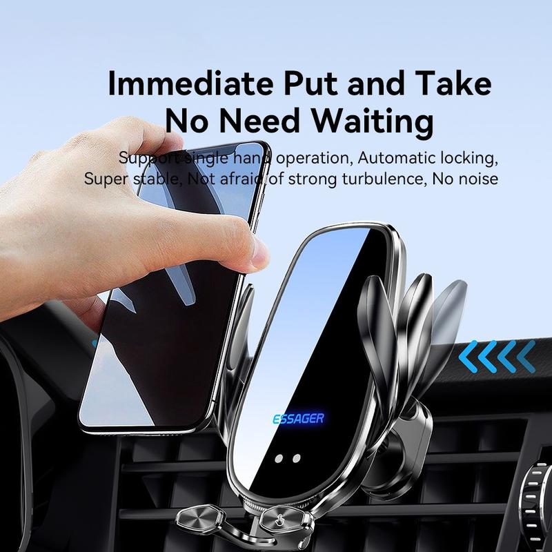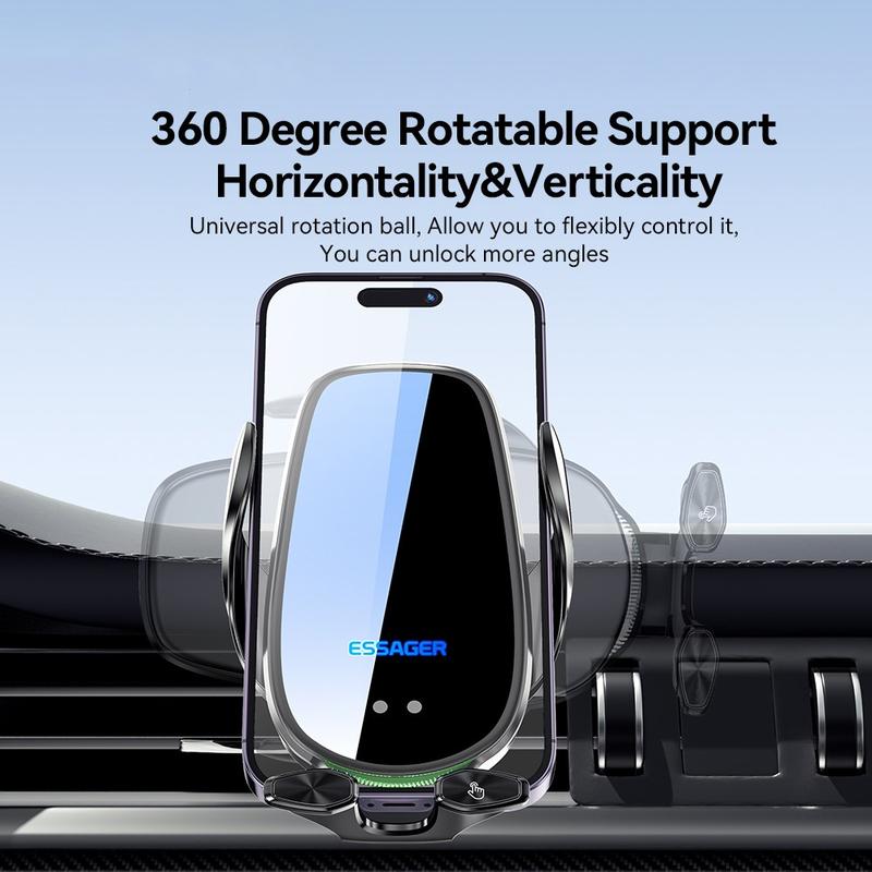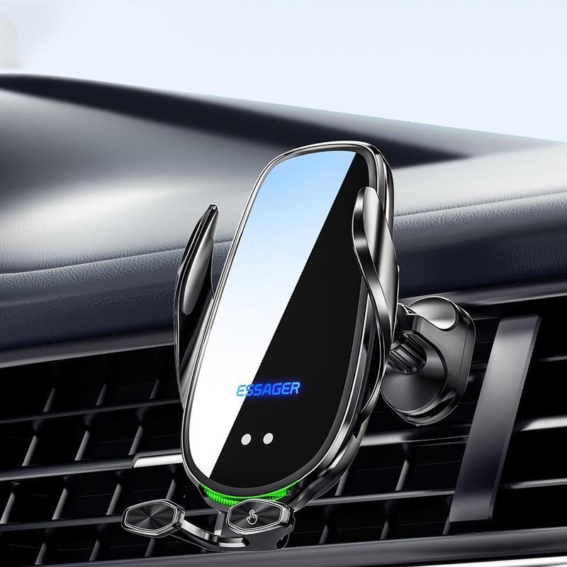 • ESSAGER 15W Smart Car Wireless Charger Fahrzeug Handyhalterung Ladegerät Air Vent Telefonhalter mit Umgebungslicht