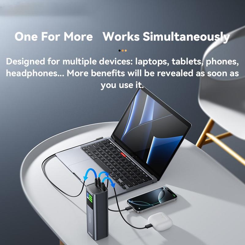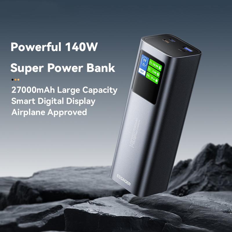 Die ESSAGER EDY140W Powerbank bietet 140 W Ladeleistung für Laptops, eine enorme Kapazität, gleichzeitige Unterstützung mehrerer Geräte, TFT-Echtzeitüberwachung und eine robuste, hochwertige Verarbeitung - ideal für Power-User, Reisende und Profis.