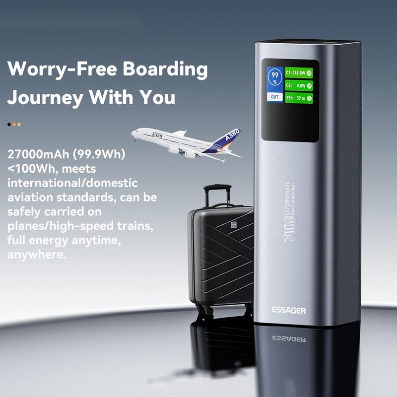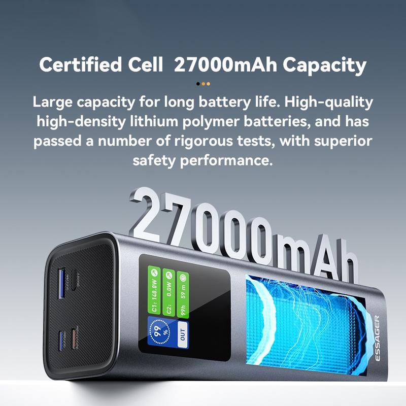 Essager EDY140W-CH0G-Z 27000mAh Power Bank - 140W Dual-Way Schnellladung, Triple-Port Ausgang, Smart Chip mit TFT Farbdisplay