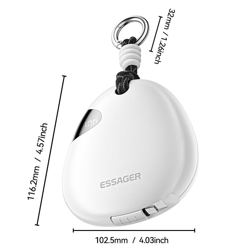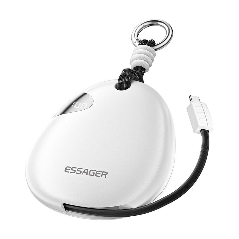 Die ESSAGER 10000mAh Fast Charging Power Bank bietet zuverlässige Energie für unterwegs mit einem integrierten einziehbaren 70cm Typ-C Kabel. Sie wurde für Reisen, Pendler und den Einsatz im Freien entwickelt und liefert bis zu 22,5 W Schnellladung, während sie dank des integrierten Karabinerclips kompakt, leicht und einfach zu tragen ist.