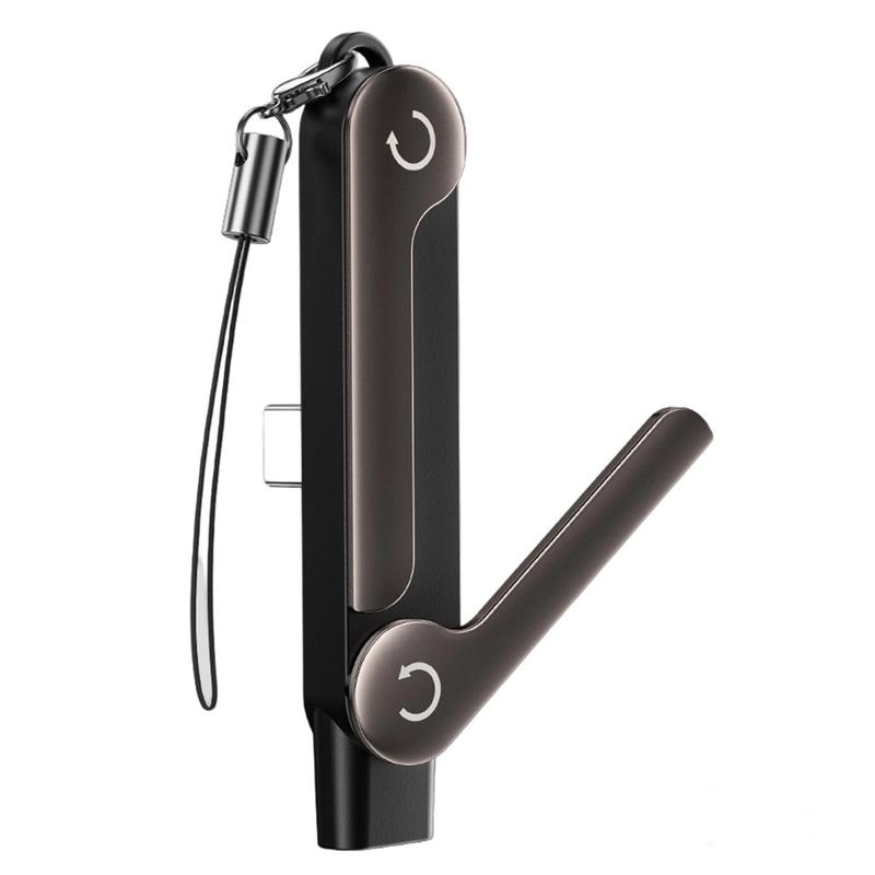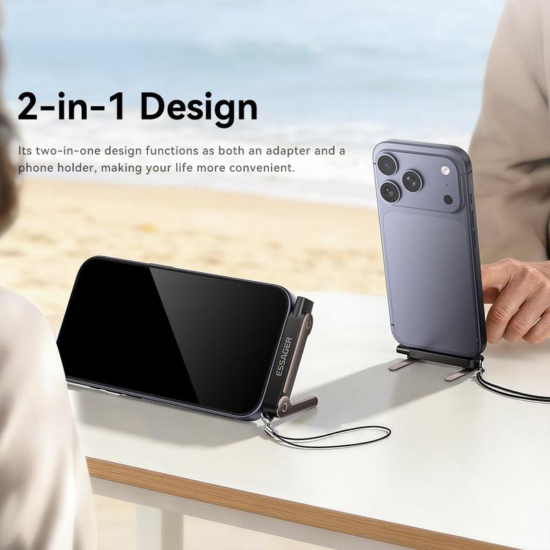 - 2-in-1-Design, das einen USB-C-Adapter mit einem klappbaren Handyhalter kombiniert
