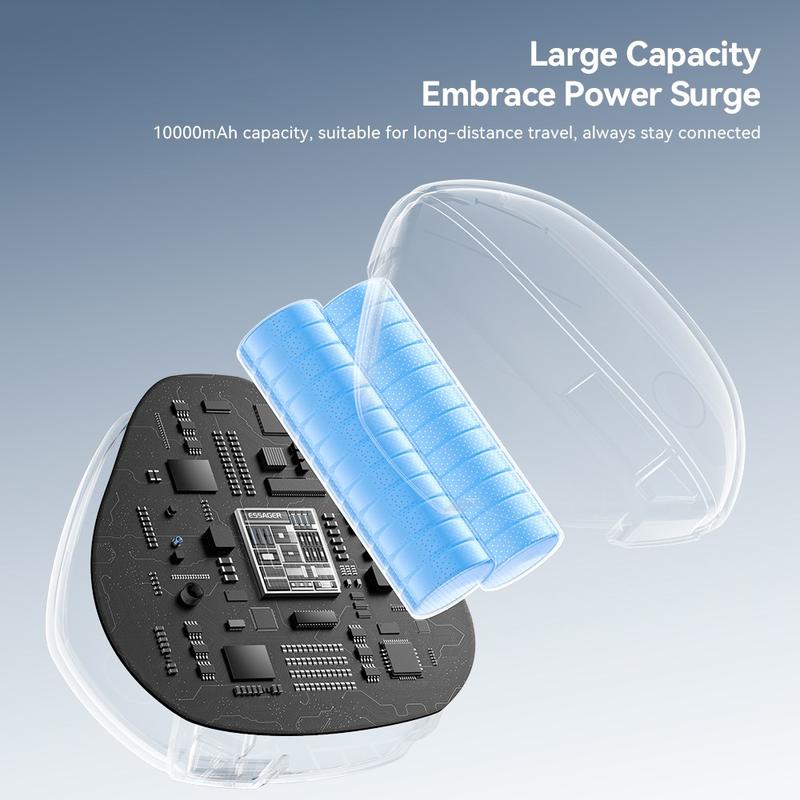Die ESSAGER 10000mAh Powerbank bietet eine zuverlässige Ladefunktion für unterwegs mit einer Gesamtkapazität von 10000mAh und einer Nennleistung von ca. 5500mAh - ideal zum Aufladen von Smartphones, Ohrhörern und kleinen Geräten während des Tages.