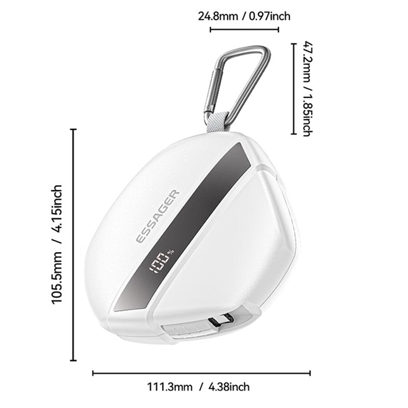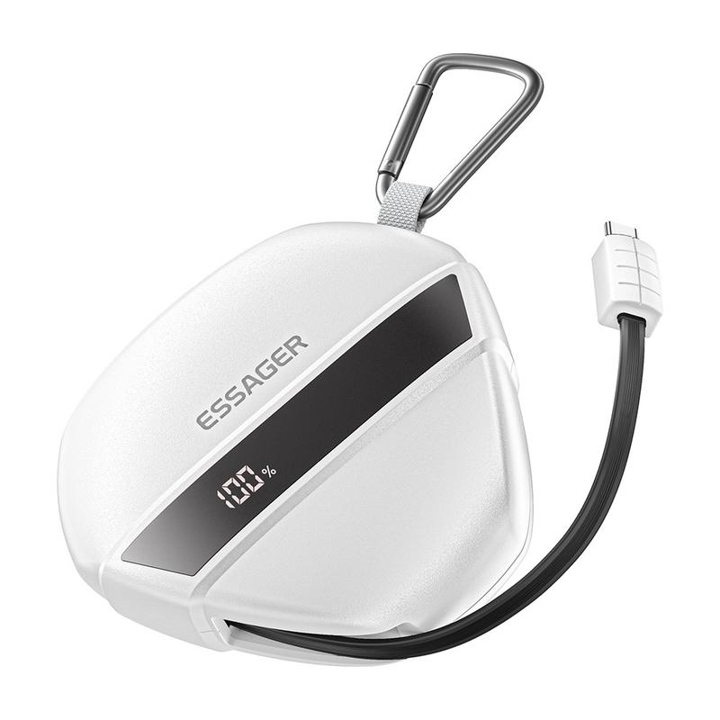 Die ESSAGER 22,5 W Schnelllade-Powerbank bietet Hochgeschwindigkeitsaufladung, ein integriertes Kabel, eine robuste Konstruktion und ein reisefreundliches Design - ein großartiger Begleiter für den täglichen Gebrauch, das Pendeln und Outdoor-Aktivitäten.