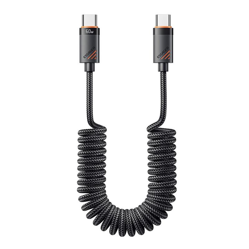Essager Spring USB-C-Kabel mit PD-Schnellladefunktion - 1.8m/60W - Schwarz
