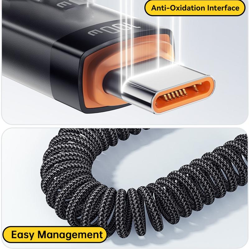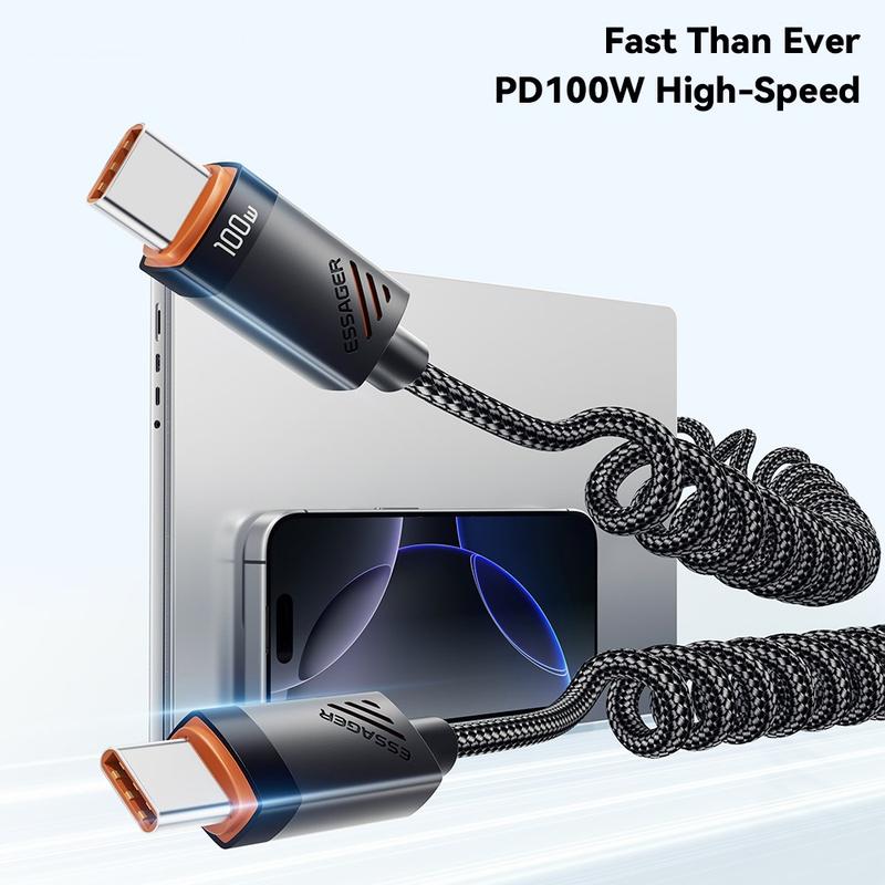 Das ESSAGER-Federkabel kombiniert schnelles Laden, Langlebigkeit und ein praktisches Spiraldesign, das dabei hilft, Kabel ordentlich zu verstauen. Es ist ideal für Nutzer, die ein zuverlässiges USB-C-Kabel suchen, das sich bei Bedarf ausdehnt, aber kompakt bleibt, wenn es nicht gebraucht wird, was es besonders praktisch für den Einsatz im Auto und für tragbare Ladesysteme macht.