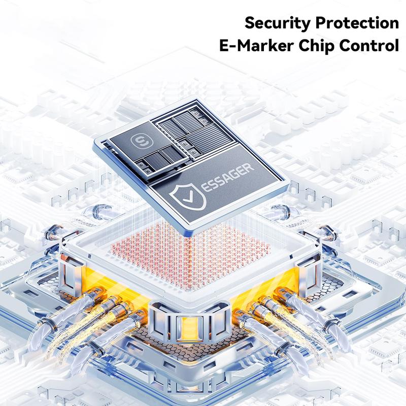- Dank integrierter E-Marker-Chips können USB-C-Kabel sicher mit Geräten und Ladegeräten kommunizieren, um eine ordnungsgemäße Stromversorgung zu gewährleisten.