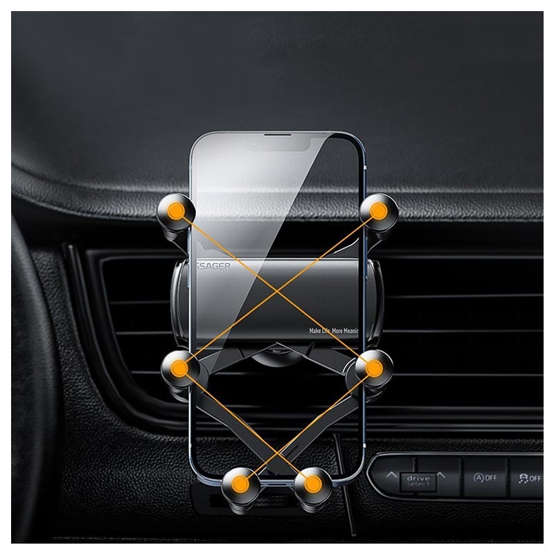 Die Gravity-Autohalterung der Essager Turui-Serie mit Sechs-Punkt-Griff hält Ihr Smartphone sicher und griffbereit, wenn Sie hinter dem Lenkrad sitzen. Die sechs Klemmen passen sich der Form Ihres Smartphones an und halten es fest, ohne dass es herunterfallen und beschädigt werden kann. Sein kompaktes Design und die Lüftungsschlitzhalterung sorgen für eine hervorragende Sichtbarkeit auf der Straße, während das Drehgelenk es Ihnen ermöglicht, die Position Ihres Smartphones nach Belieben anzupassen.