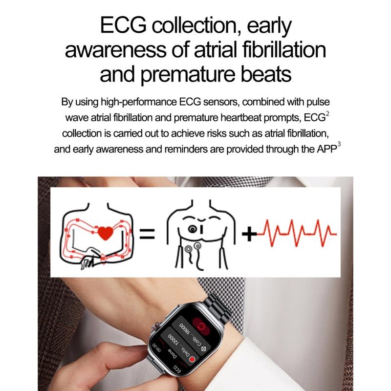 ET585 Smartwatch mit AMOLED-Display mit EKG, SOS-Notruf, Gesundheitsüberwachung, Edelstahlarmband
