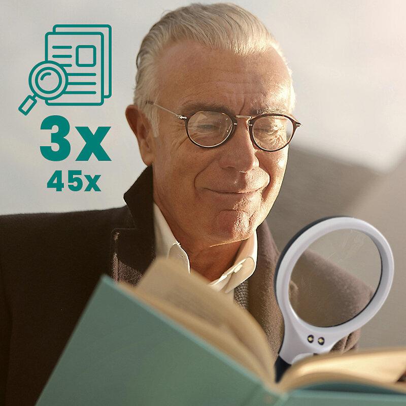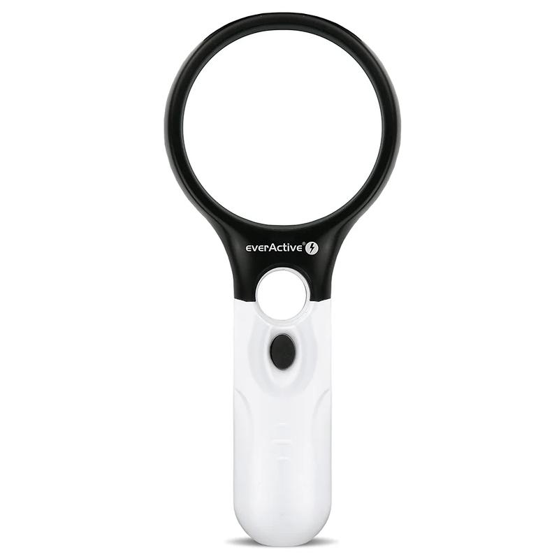 • EverActive MG-01 Lupe mit LED-Hintergrundbeleuchtung - 3x große Linse und 45x Mini-Linse, 3x AAA Batteriebetrieb