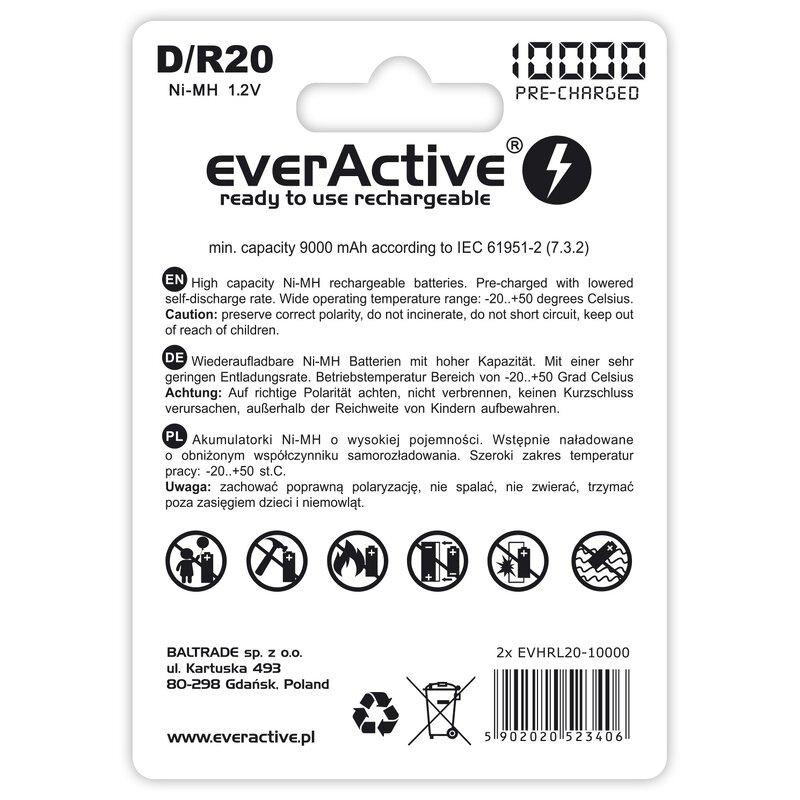 EverActive Professional Line EVHRL20-10000 Ni-MH R20/D Wiederaufladbare Batterien 10000mAh - 2 Stk.
