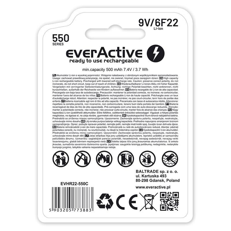 EverActive Professional+ Lithium USB-C 6F22/9V Wiederaufladbarer Akku - 550mAh - 1 Stk.