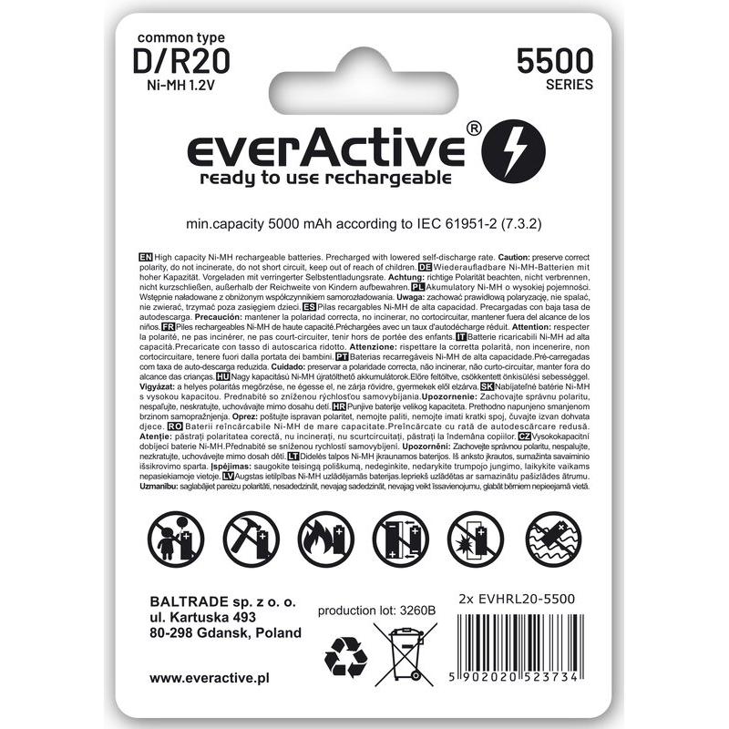 EverActive Silver Line EVHRL20-5500 Wiederaufladbare D-Batterien 5500mAh - 2 Stk.