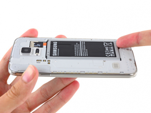 Da gibt es eine Aussparung in der unteren rechten Ecke des Akkus. Wieder einmal schieben Sie ein Kunststoff-Öffnungswerkzeug oder den Fingernagel in die Aussparung, und den Akku zu heben.