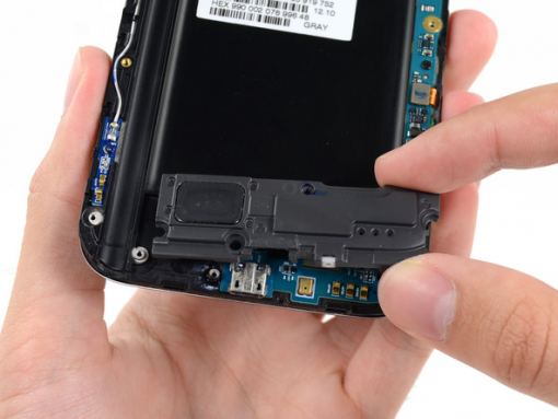 Verwenden Sie einen Kunststoff-Öffnungswerkzeug, um den Akku aus dem Gehäuse zu heben. Sie müssen das Werkzeug in die Vertiefung über dem Akkufach einlegen, um dies zu tun.