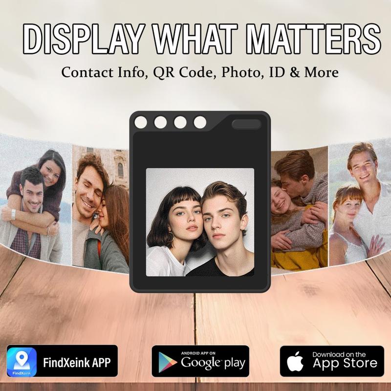 - Der anpassbare Bildschirm unterstützt Fotos, Text, Kontaktdaten und QR-Codes über die FindXeink-App