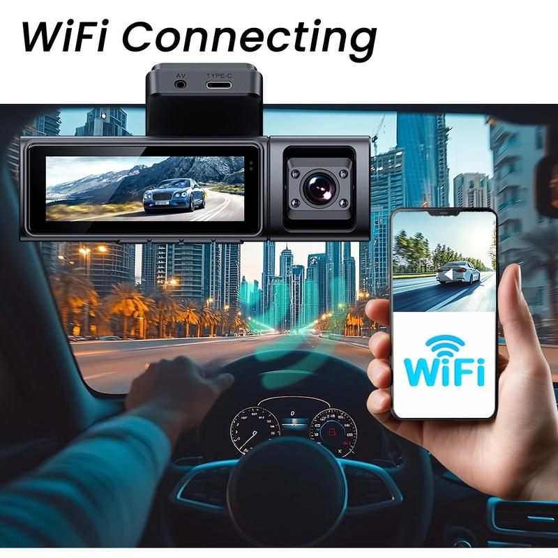 F9 3-Kanal-Dashcam mit GPS - 4K-Frontkamera, 1080P-Innenraum- und Rückfahrkamera, WiFi-App-Steuerung und Nachtsichtfunktion