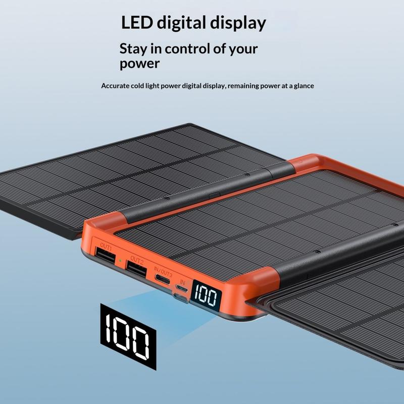 Die faltbaren monokristallinen Solarmodule lassen sich mit einem einzigen Druck ausklappen, sodass Sie bei Outdoor-Aktivitäten das Sonnenlicht optimal nutzen können. Neben der Unterstützung für das Laden per Solarenergie bietet die Powerbank mehrere kabelgebundene Ein- und Ausgangsoptionen, wodurch sich eine Vielzahl von Geräten problemlos aufladen lässt. Über das digitale LED-Display können Sie den Akkustatus übersichtlich ablesen, während die robuste Konstruktion für den anspruchsvollen täglichen Einsatz im Freien ausgelegt ist.