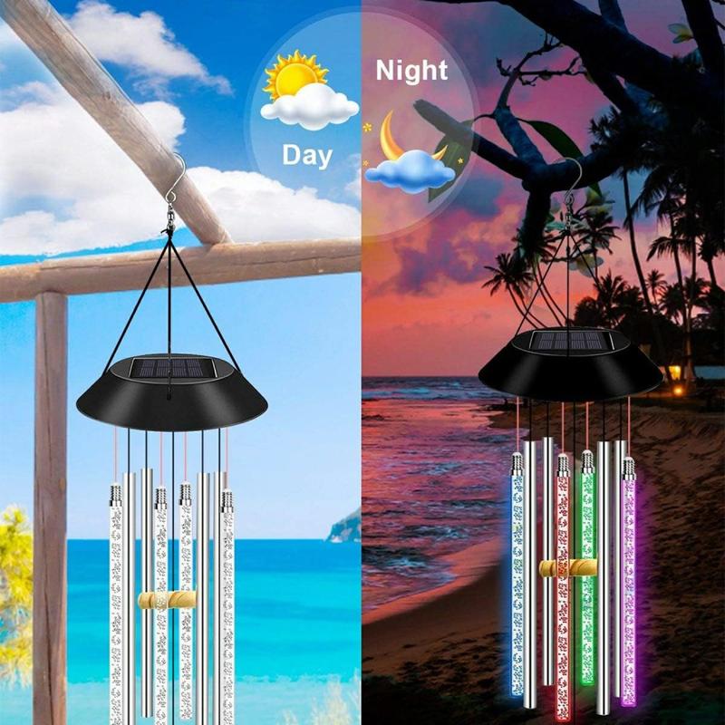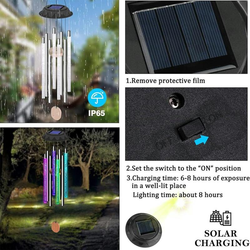 Verwandeln Sie Terrassen, Balkone und Baumzweige in einen bewegten Regenbogen. Dieses solarbetriebene Windspiel kombiniert sanft schwingende Acrylröhren mit sieben farbwechselnden LEDs, die nach Einbruch der Dunkelheit von Rot zu Violett übergehen. Ein 50 × 50 mm großes monokristallines Panel lädt tagsüber den eingebauten 600-mAh-Ni-MH-Akku auf. Nachts schaltet sich die Lampe automatisch ein und leuchtet bis zu 12 Stunden lang - ohne Verkabelung, ohne Stromrechnung, einfach nur mühelos drinnen oder draußen.