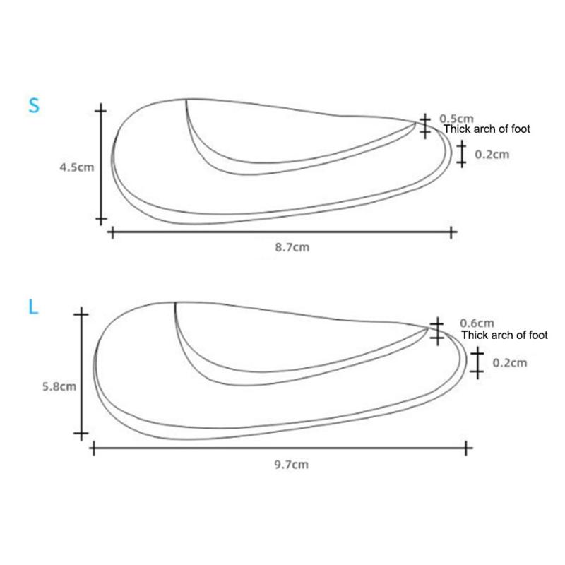- Silikon-Unterstützung: Bietet eine feste und dennoch sanfte Unterstützung für die Fußgewölbe und hilft, Schmerzen im Zusammenhang mit Plattfüßen, Plantarfasziitis und hohen Fußgewölben zu lindern.