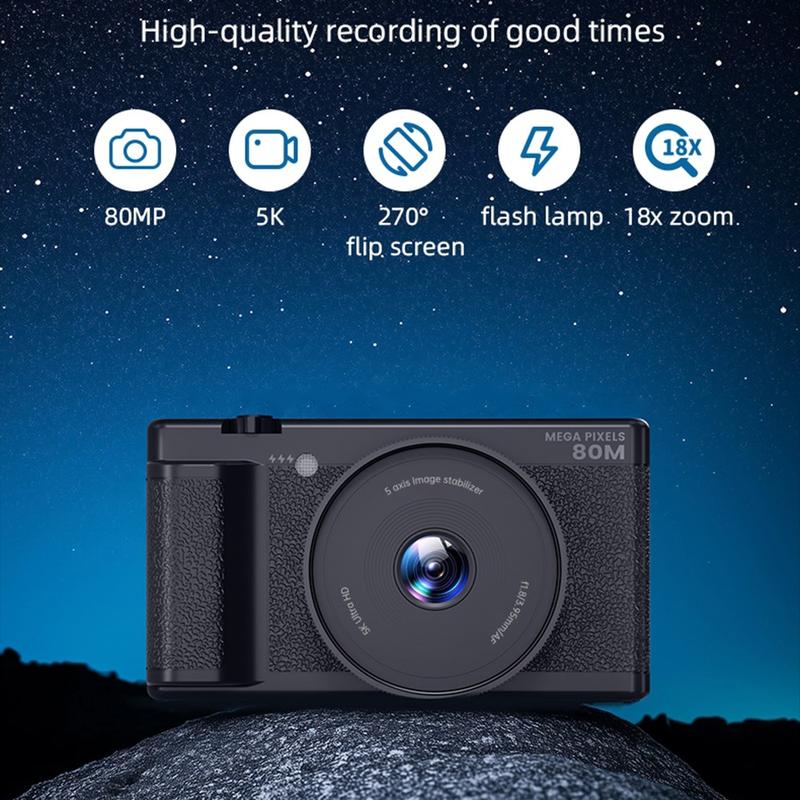 FC003W Digitalkamera mit 2,8" IPS-Flip-Display - 5K-Videoaufnahmen, 80MP-Fotos und WiFi-Konnektivität