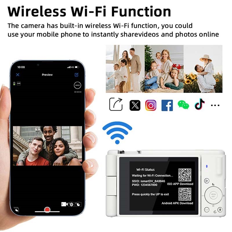 Die FC003W kombiniert hochauflösende Videos, flexible Aufnahmewinkel und kabelloses Teilen in einer kompakten Digitalkamera. Sie ist ideal für Benutzer, die starke kreative Funktionen ohne komplizierte Bedienelemente oder sperrige Geräte wünschen.