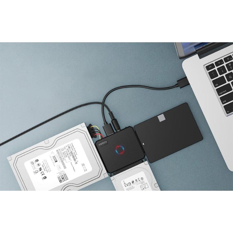 FIDECO PL03 Universaladapter - einfache Verwaltung der Daten von verschiedenen Laufwerken. Der FIDECO PL03 ist ein vielseitiger USB 3.0-zu-IDE/SATA-Adapter, an den Sie bis zu drei Festplatten gleichzeitig anschließen können. Sein kompaktes Design, die hohe Datenübertragungsgeschwindigkeit und die breite Kompatibilität machen ihn ideal für Profis und Heimanwender. Das Gerät ermöglicht eine schnelle und bequeme Übertragung von Dateien zwischen verschiedenen Geräten und erleichtert gleichzeitig die Archivierung und Verwaltung von Daten.