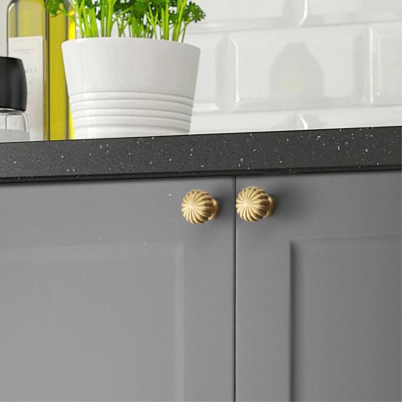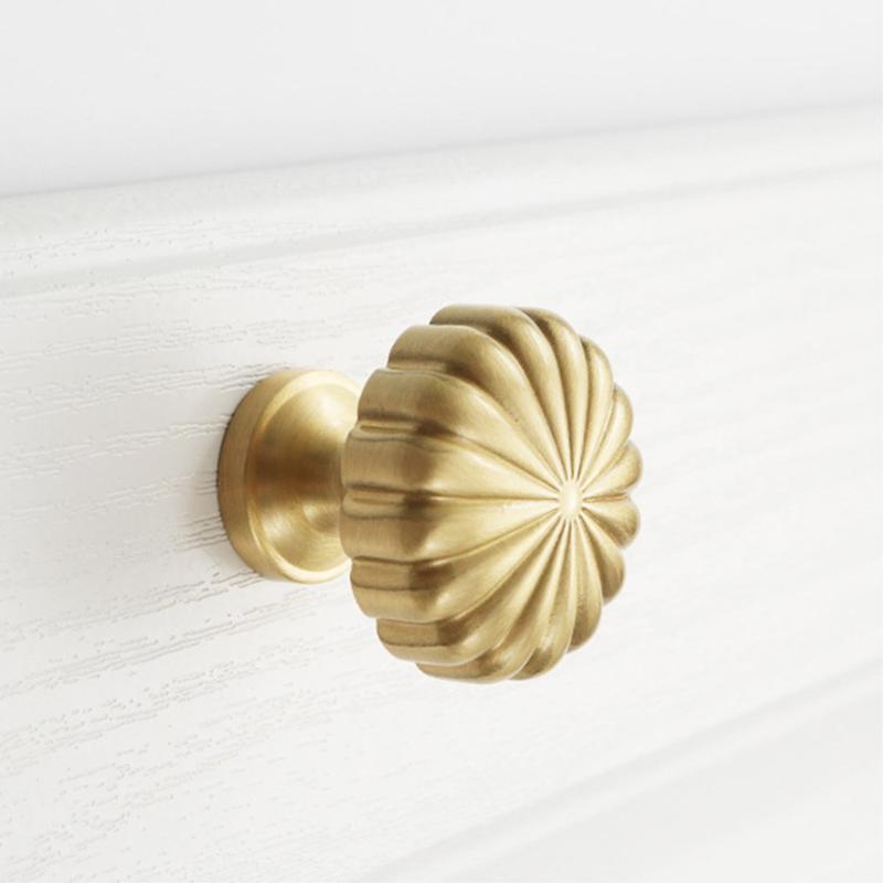 Verleihen Sie Schränken und Schubladen einen frischen, eleganten Touch mit diesem Kürbisknopf aus massivem Messing. Das vom Kürbis inspirierte Profil verleiht ihm klassischen europäischen Charme, während die Anti-Oxidationsbeschichtung den satten Goldton über Jahre hinweg leuchten lässt. Jeder Streifen ist präzise gefräst und liegt gut in der Hand. Die mitgelieferte 25-mm-Montageschraube passt auf die meisten Holztüren, Kommoden und Nachttische, und zwar sofort nach dem Auspacken.