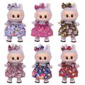 Florales Partykleid & Stirnband mit Schleife für 17cm Labubu Mini Figur - Leichtes Outfit aus Baumwollmischung, einfaches Design